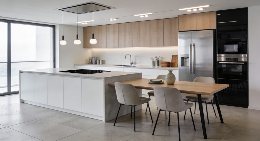 Современные кухни все чаще становятся частью «умного дома». Но техника теперь не выставляется напоказ, а интегрируется в мебель. Какие кухонные гарнитуры сейчас в моде? Те, где функционал спрятан, а чистота линий доминирует.