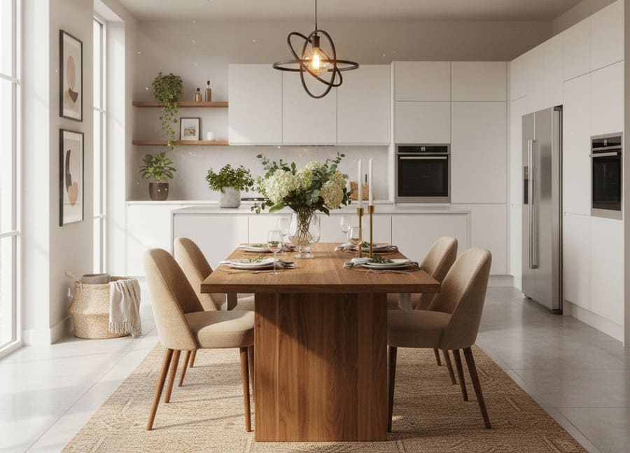 В современных интерьерах обеденная зона должна быть максимально функциональной и эстетичной одновременно. Она не просто служит утилитарным целям, но и становится элементом композиции. Неправильное размещение может загромождать пространство, неправильное оформление — нарушать гармонию стиля. А грамотный подход — и вот уже маленькая кухня кажется просторнее, а большая кухня становится теплее и уютнее.